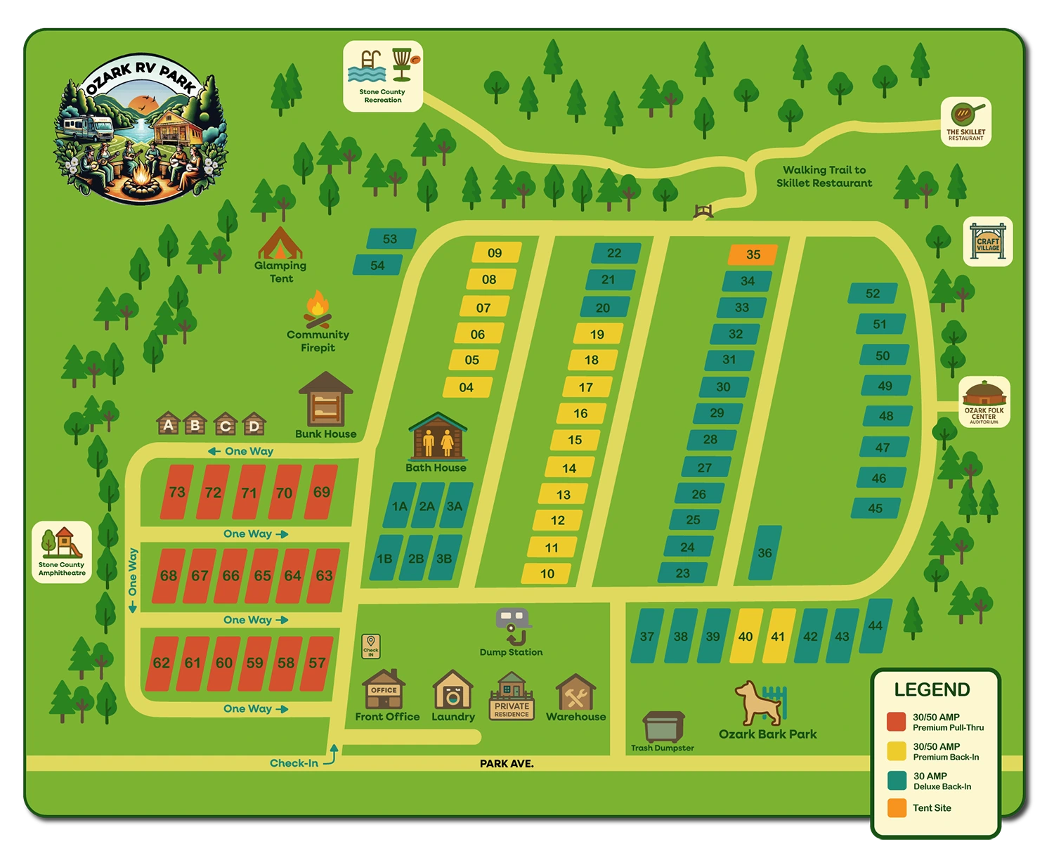 Ozark RV Park provides the ultimate RV park experience with a fantastic location and everything you need for a memorable vacation. Enjoy our extensive amenities, onsite attractions, and entertainment options.